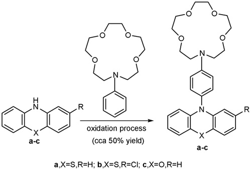 Wurster aza-crown ethers with N-para-phenylene-phenothiazine or -phenoxazine groups (09-4587QP)
