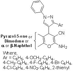 Synthesis and in vitro antimicrobial evaluation of 4H-pyrazolopyran, -benzopyran and naphthopyran derivatives of 1H-pyrazole (09-4704EP)